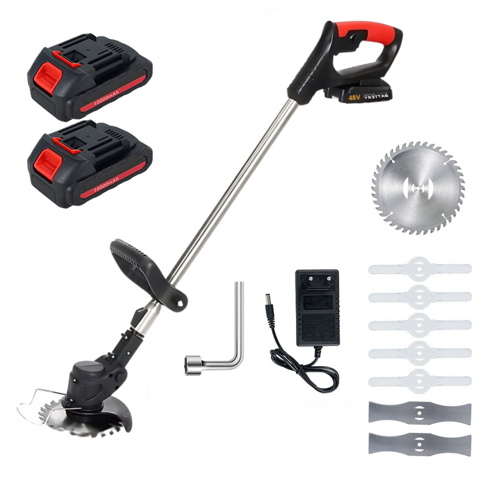 ✅ 8 Cuchillas Intercambiables – Incluye 1 disco para madera, 5 cuchillas para césped fino y 2 cuchillas planas para maleza alta, asegurando cortes precisos para cualquier necesidad.