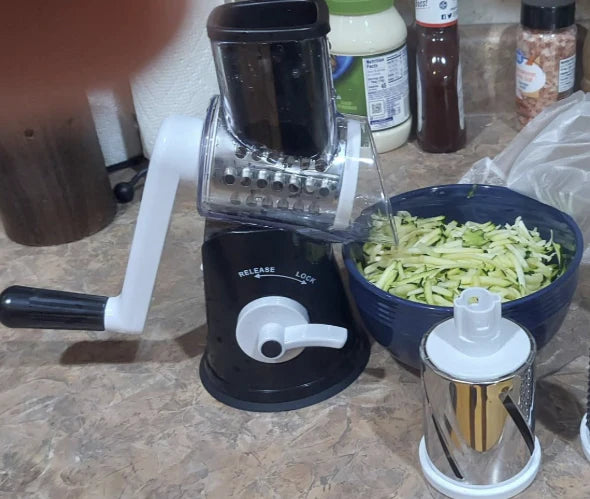 Prepara tus comidas en segundos con el rallador Turbo 3 en 1: ¡rápido, seguro y sin ensuciar!