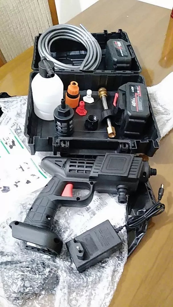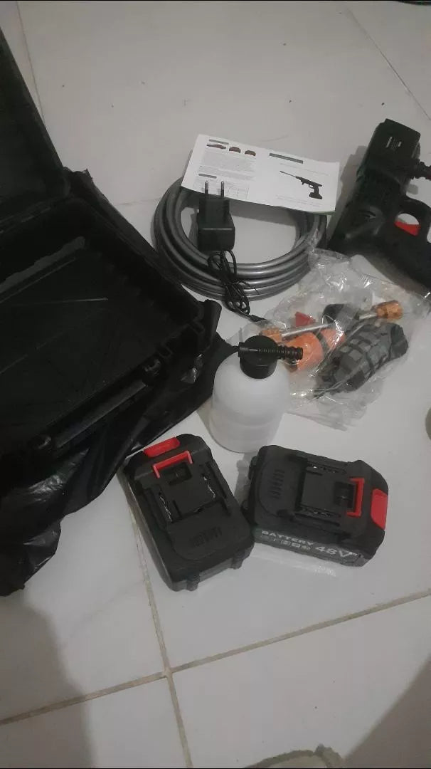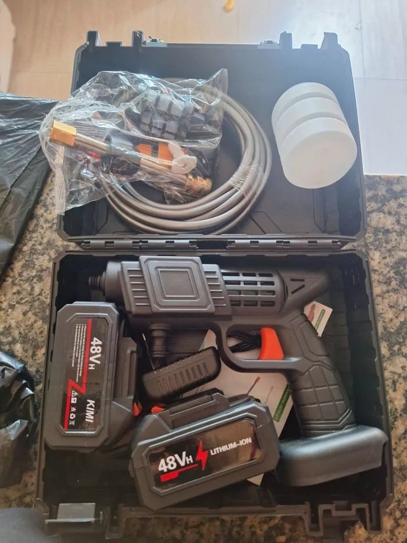 Con un tiempo de carga de 3-4 horas y autonomía de 45 minutos, esta hidrolavadora es tu aliada perfecta para la limpieza rápida y eficiente. ¡No más trabajos agotadores! Viene con 2 baterias.